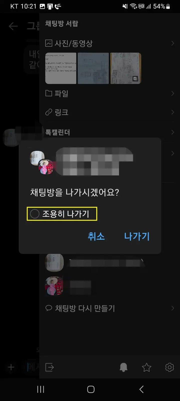 카카오톡 조용히 나가기 방법, 몰래 나가기